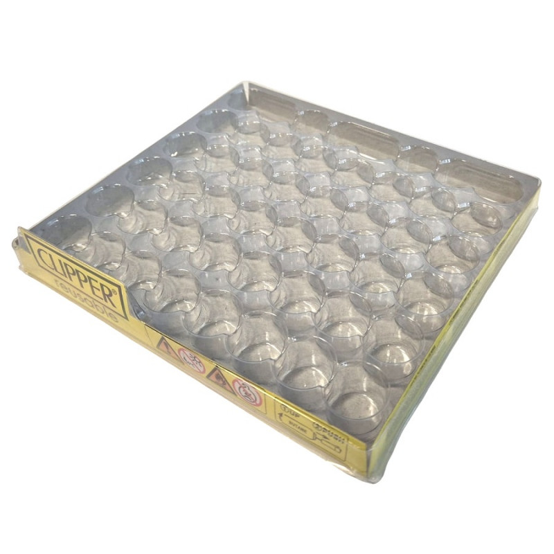 Praktyczna tacka z tworzywa sztucznego z wytłoczeniami dopasowanymi do zapalniczek Clipper w standardowym rozmiarze. Ułatwia estetyczne przechowywanie oraz ekspozycję zapalniczek w sklepie lub w domu, zapobiegając ich przesuwaniu się.