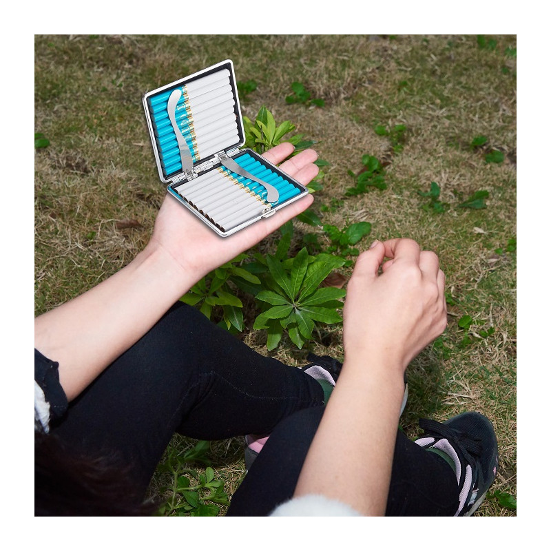 Papierośnica mieści 20 papierosów w standardowym rozmiarze.