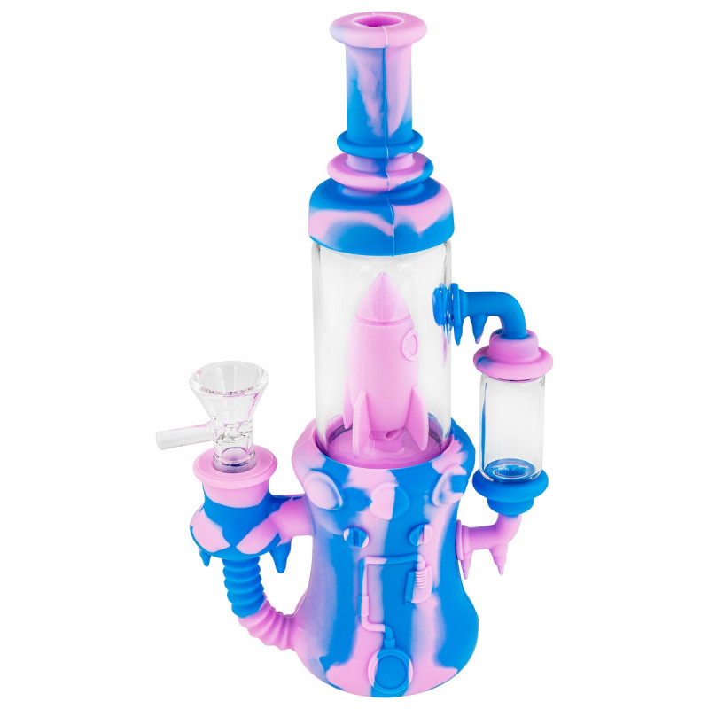 Bongo wodne o wysokości 23cm, wykonane z grubego żaroodpornego szkła borokrzemowego oraz silikonu.
