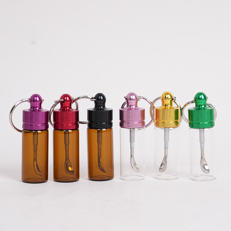 Buteleczka do tabaki wykonana z wytrzymałego szkła oraz metalu.