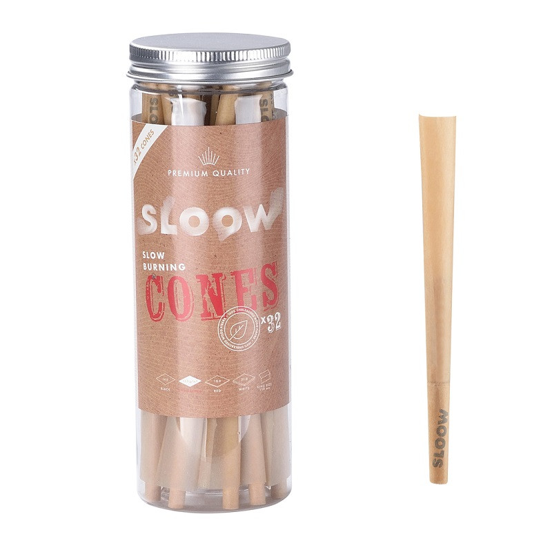 Gotowe, skręcone bibułki cones marki Sloow w kolorze brązowym.