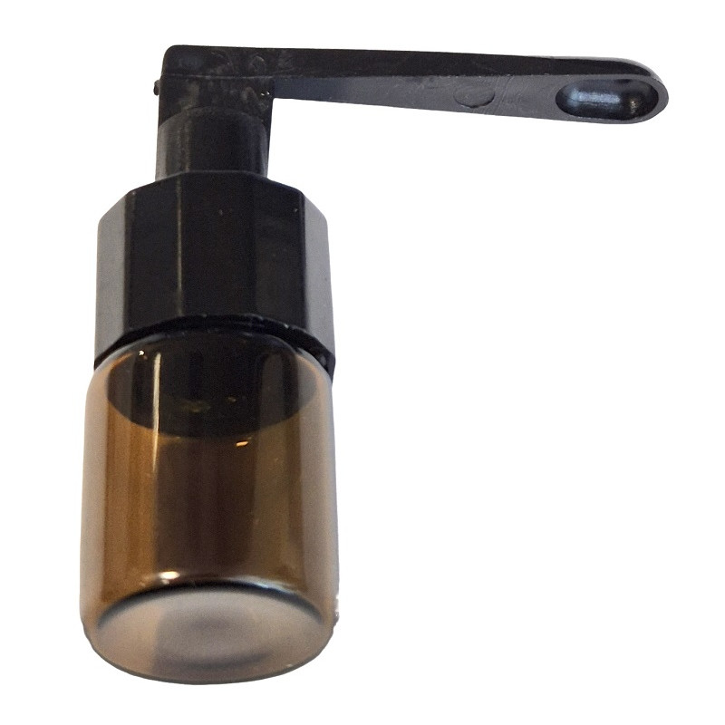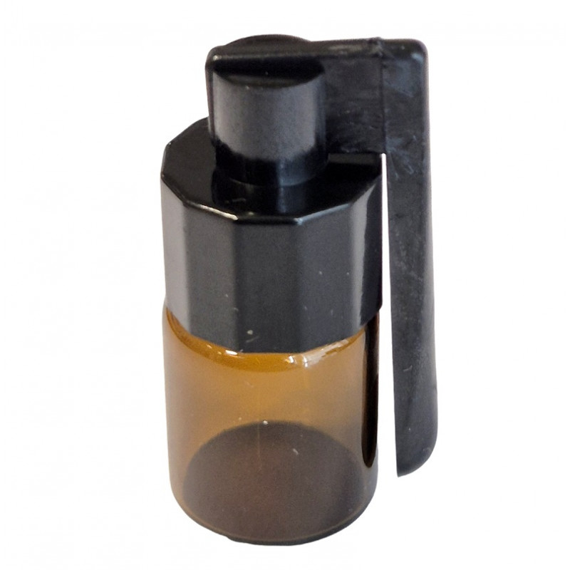 Szklany pojemnik na tabakę z wbudowaną plastikową łyżeczką.
