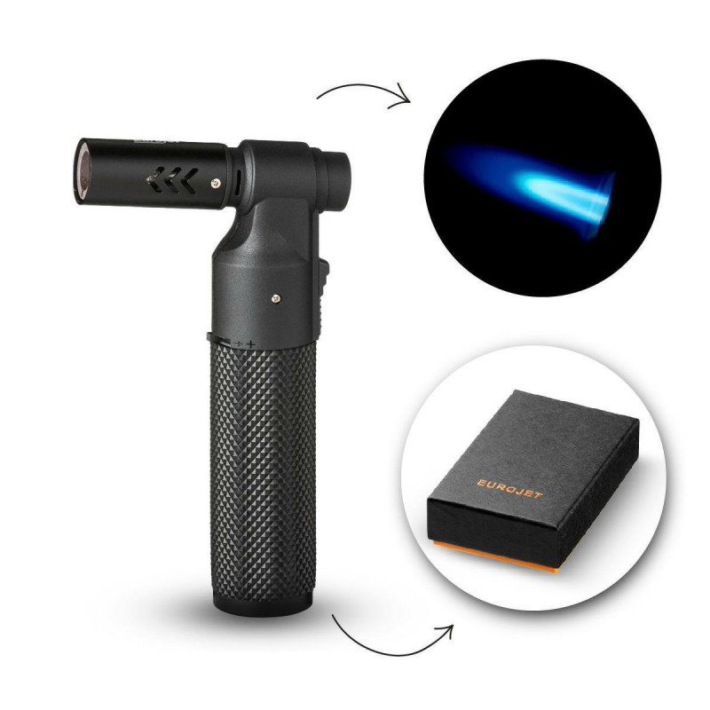Poznaj Eurojet Torch – solidną zapalniczkę wykonaną z tworzywa, gumowaną rękojeścią oraz metalowym palnikiem, stworzoną z myślą o użytkownikach ceniących zarówno styl, jak i niezawodność.