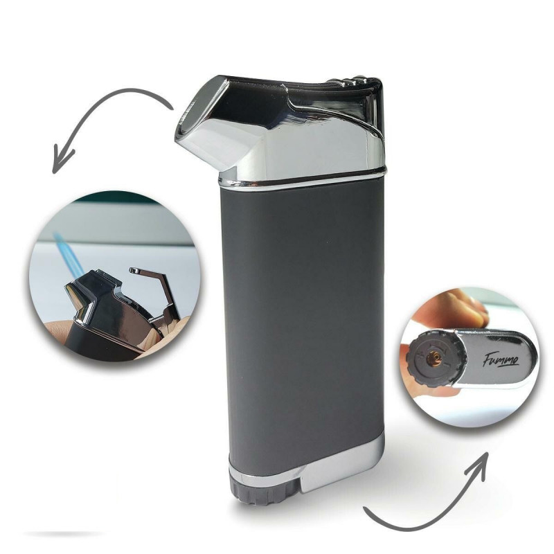 Stylowa i praktyczna zapalniczka żarowa Tully w eleganckim czarnym kolorze ze srebrnymi wstawkami to idealne połączenie funkcjonalności i nowoczesnego designu. Wyposażona w boczny płomień, doskonale sprawdzi się w codziennym użytkowaniu.