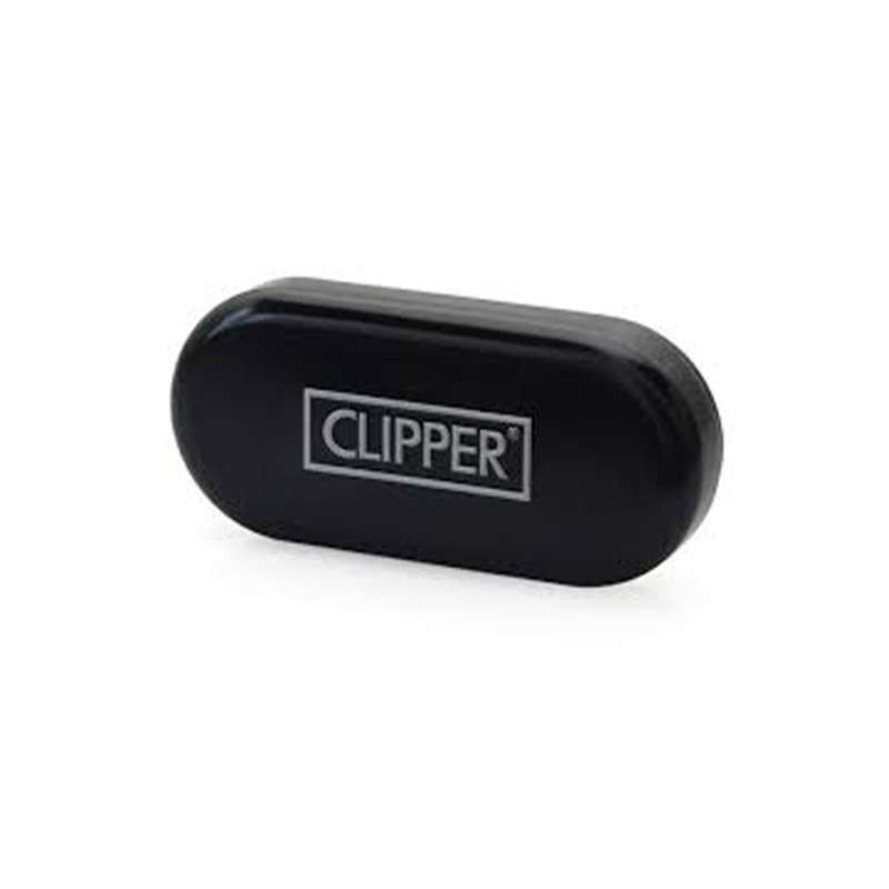 Metalowa zapalniczka Clipper razem z metalowym opakowaniem.