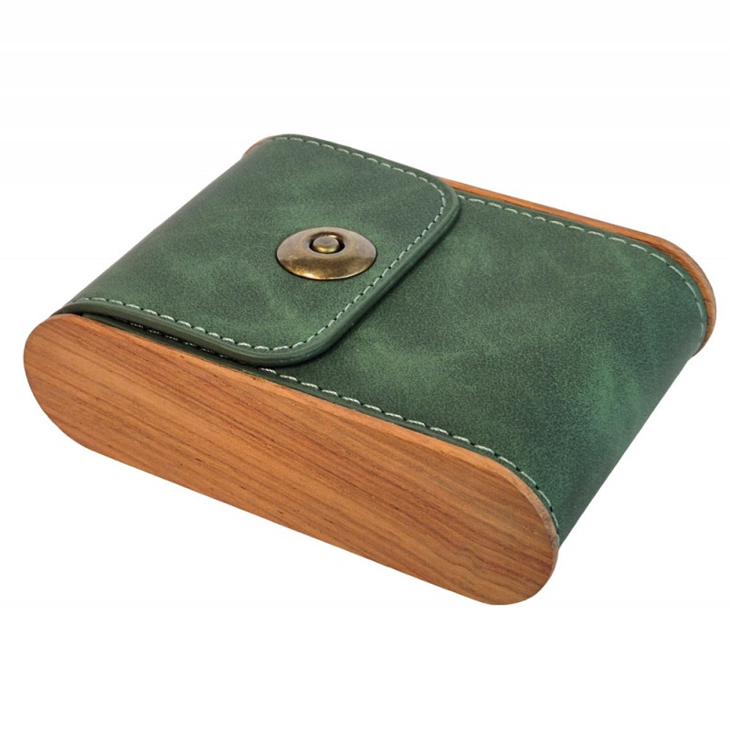 Eleganckie i funkcjonalne etui na papierosy wykonane z połączenia naturalnego drewna oraz wysokiej jakości eko skóry. Starannie dobrane materiały nadają mu wyjątkowy charakter, a widoczne, dekoracyjne przeszycia podkreślają nowoczesny i stylowy design.