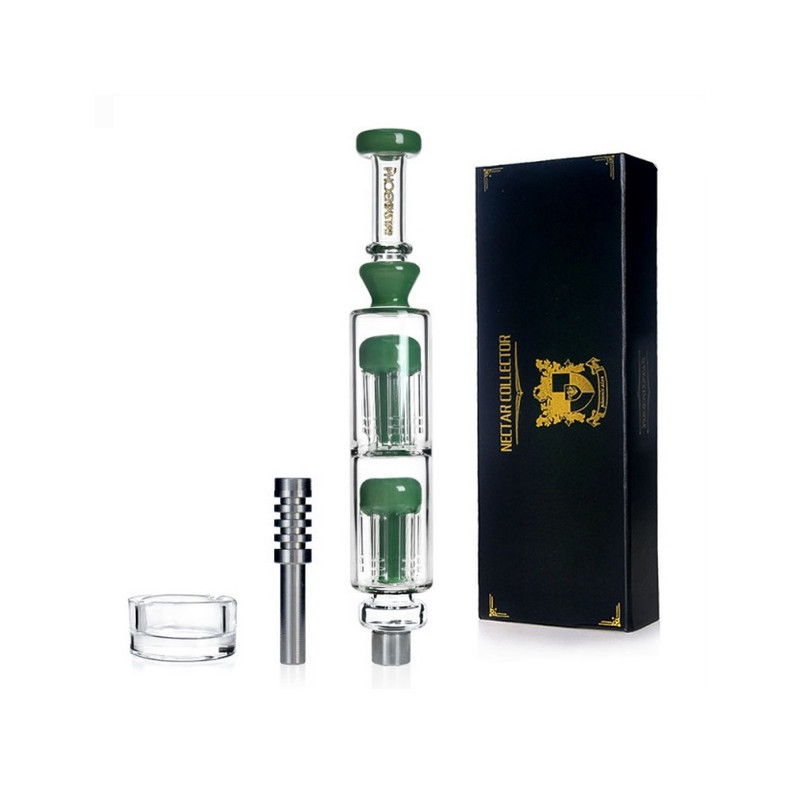 Sercem zestawu jest szklany wodny bubbler z podwójnym perkolatorem 8-ramiennym, który zapewnia zaawansowaną filtrację i maksymalną dyfuzję. Dzięki temu każde użycie charakteryzuje się wyjątkową gładkością i komfortem. Całość uzupełnia wytrzymały tytanowy gwóźdź, znany z doskonałej retencji ciepła oraz długiej żywotności, a także szklana miseczka na wosk.