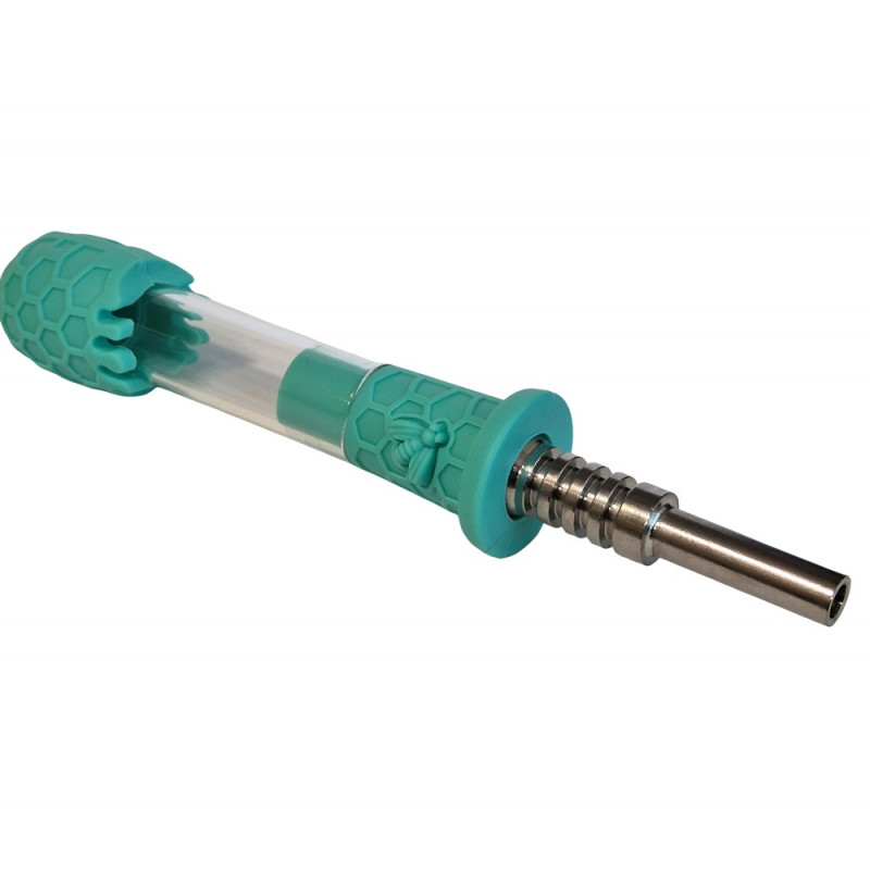 Praktyczny i poręczny kolektor nektaru o długości 16,5 cm, zaprojektowany z myślą o wygodzie użytkowania oraz trwałości. Końcówka (gwóźdź) wykonana jest z odpornej stali, środkowa część ze szkła, natomiast kolorowe elementy z wysokiej jakości silikonu, co zapewnia dobrą izolację termiczną oraz pewny chwyt.