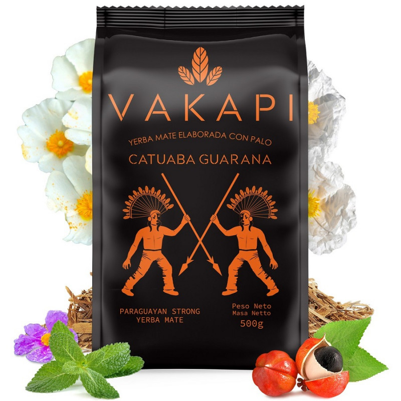 Vakapi to wyrazista, paragwajska yerba mate o mocnym, dymnym charakterze, powstająca w tradycyjnym procesie suszenia nad ogniem (barbacuá). Wersja Catuaba Guarana łączy głęboki, lekko tytoniowy smak z egzotycznymi dodatkami, tworząc energetyzującą i aromatyczną kompozycję.