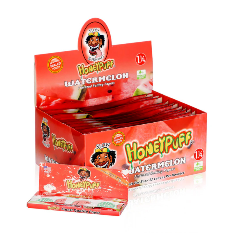 Aromatyzowane bibułki do skręcania amerykańskiej marki HONEYPuff o smaku arbuzowym. W rozmiarze King Size (110 mm), idealne dla osób ceniących większy format i komfort użytkowania.