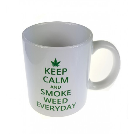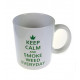Na jednej stronie kubka znajduje się napis keep calm, na drugiej logo firmy.